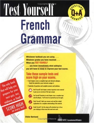 Intermediate through Advanced Featuring topic overviews, hundreds of practice questions, and self-evaluation keys, Test Yourself: French Grammar prepares students to answer standardized test questions correctly, with maximum comprehension. Each chapter includes four steps to language success: Brief Yourself, Test Yourself, Check Yourself, and Grade Yourself, which provide self-evaluation and identification of areas needing workRead more Test Yourself: French Grammar