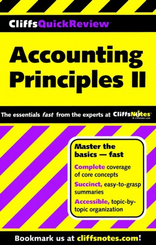 CliffsQuickReview Accounting Principles II acts as a supplement to your textbook and to classroom lectures. Use this reference in any way that fits your personal style for study and review — you decide what works best with your needs. Whether you read the book from cover to cover or focus on select topics, you always get clear, jargon-free explanations of the fundamentals, supplemented with equations, charts, and tables.