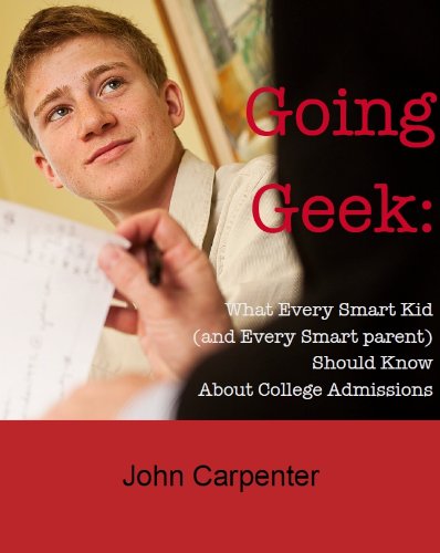 “Going Geek: What Every Smart Kid (and Every Smart Parent) Should Know About College Admissions" is a new guide to college admissions for very bright kids and their parents. Admissions consultant John Carpenter wrote it having in mind those high achieving kids who love learning but often get overlooked in a competitive admissions world because, as bright as they are, they don’t know how to represent themselves effectively. With the exception of the few who do have access to savvy counselors, many smart kids never get the specific guidance they need to know how to highlight their geeky nature in a college application.